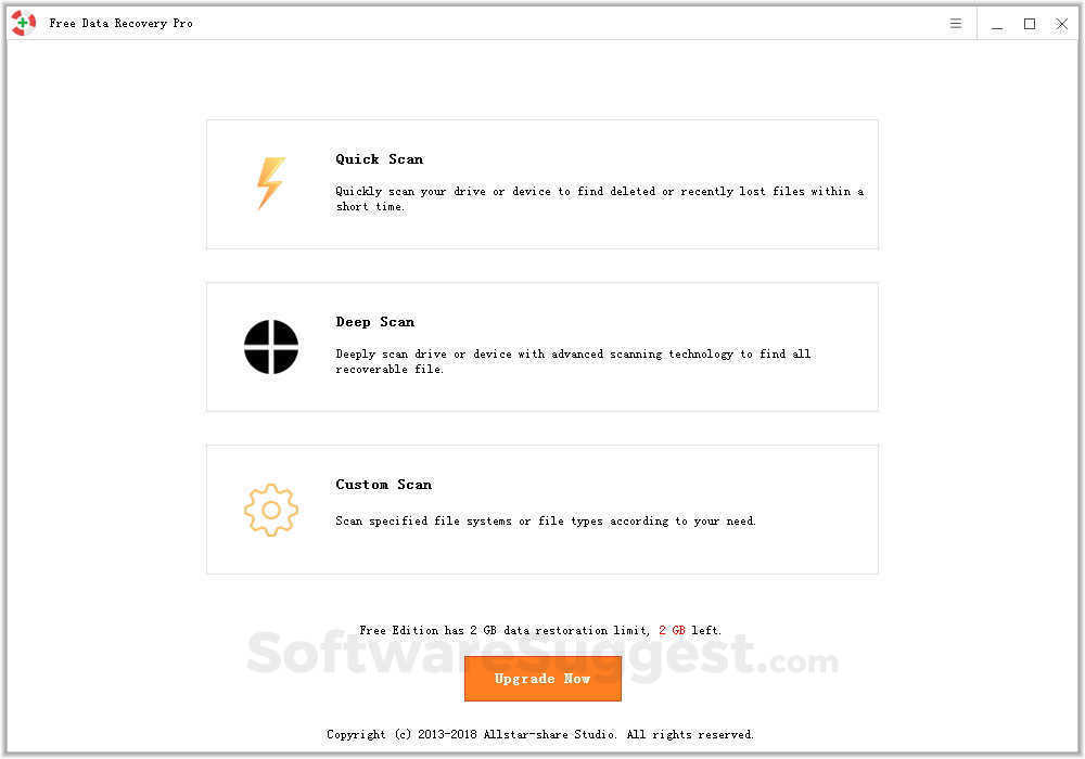 Allstar Data Recovery Pro is fast, reliable, and safe free data recovery software. It can recover deleted files, formatted drives, partition loss, OS crashes, virus attacks, and other data loss cases from hard drives, USB flash drives, memory cards, digital devices, and other storage media devices.