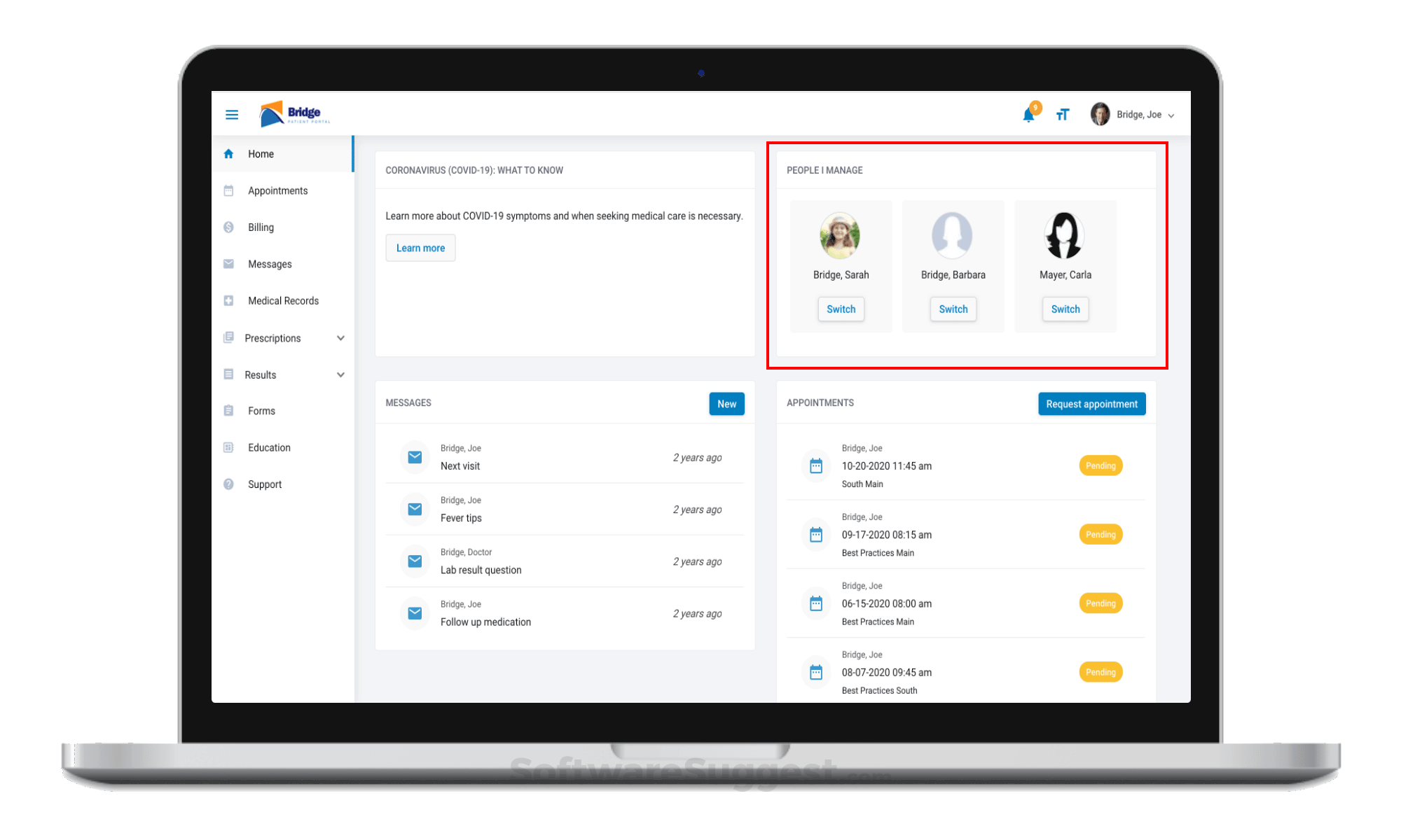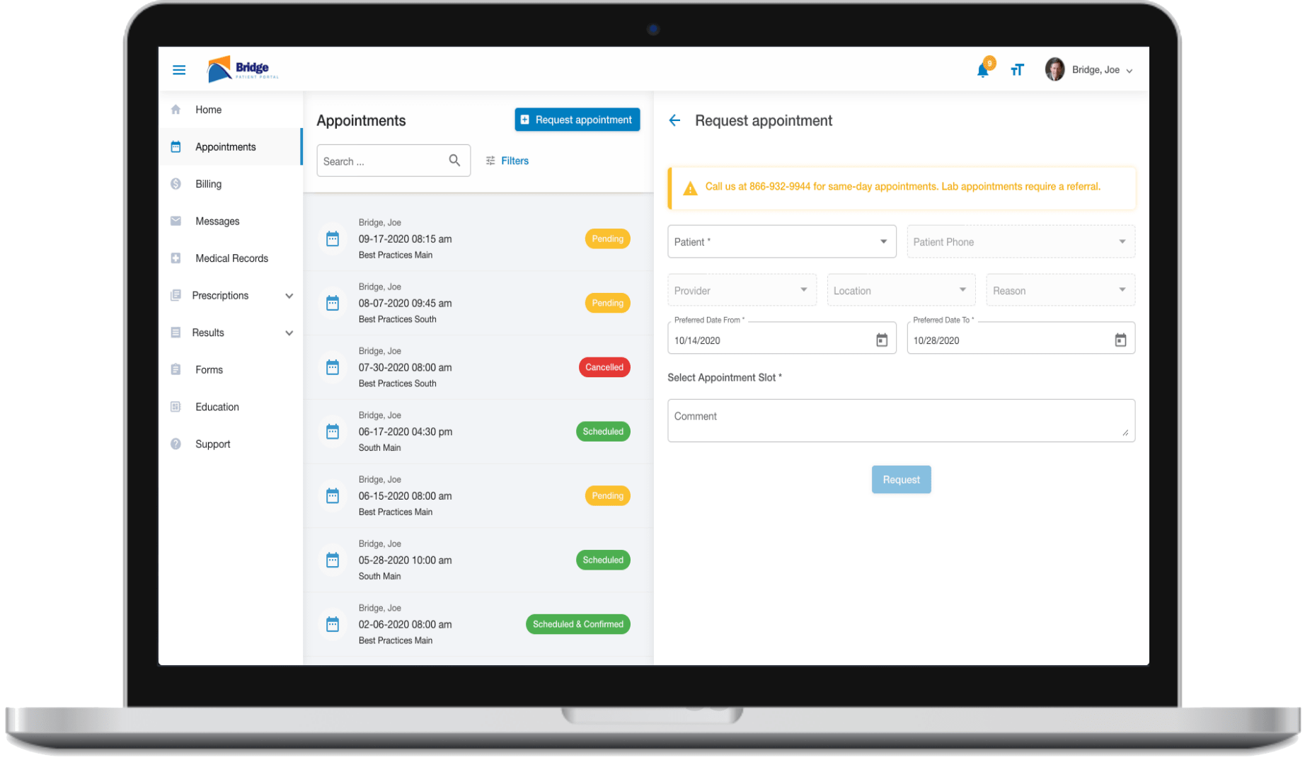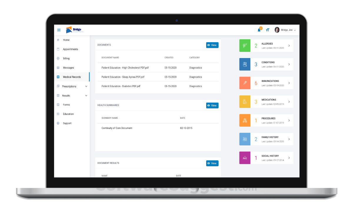 Bridge Patient Portal is a leading patient engagement vendor and 2015 ONC Edition certified. This patient portal software manages self-scheduling for patients, patient registration, online bill payment, medical records, patient forms, prescription refills, and more.