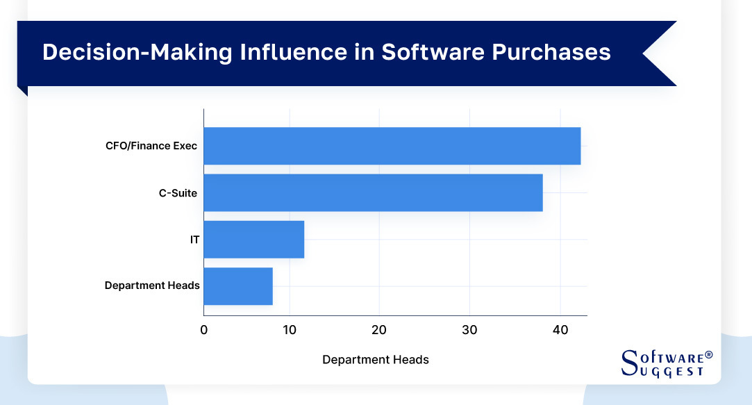 Financial leaders have a stronger influence on software purchases. Vendors should focus on ROI-driven messaging and financial justifications