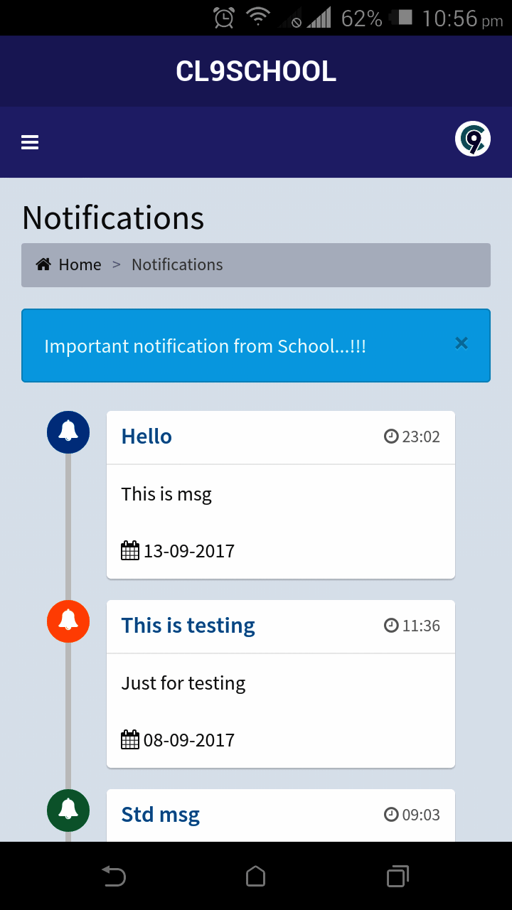 Cl9 School mobile app is compatible with Android devices.