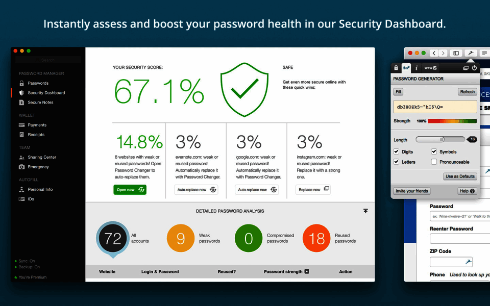 1Password offers a variety of features, such as a password generator, secure notes, and travel mode.