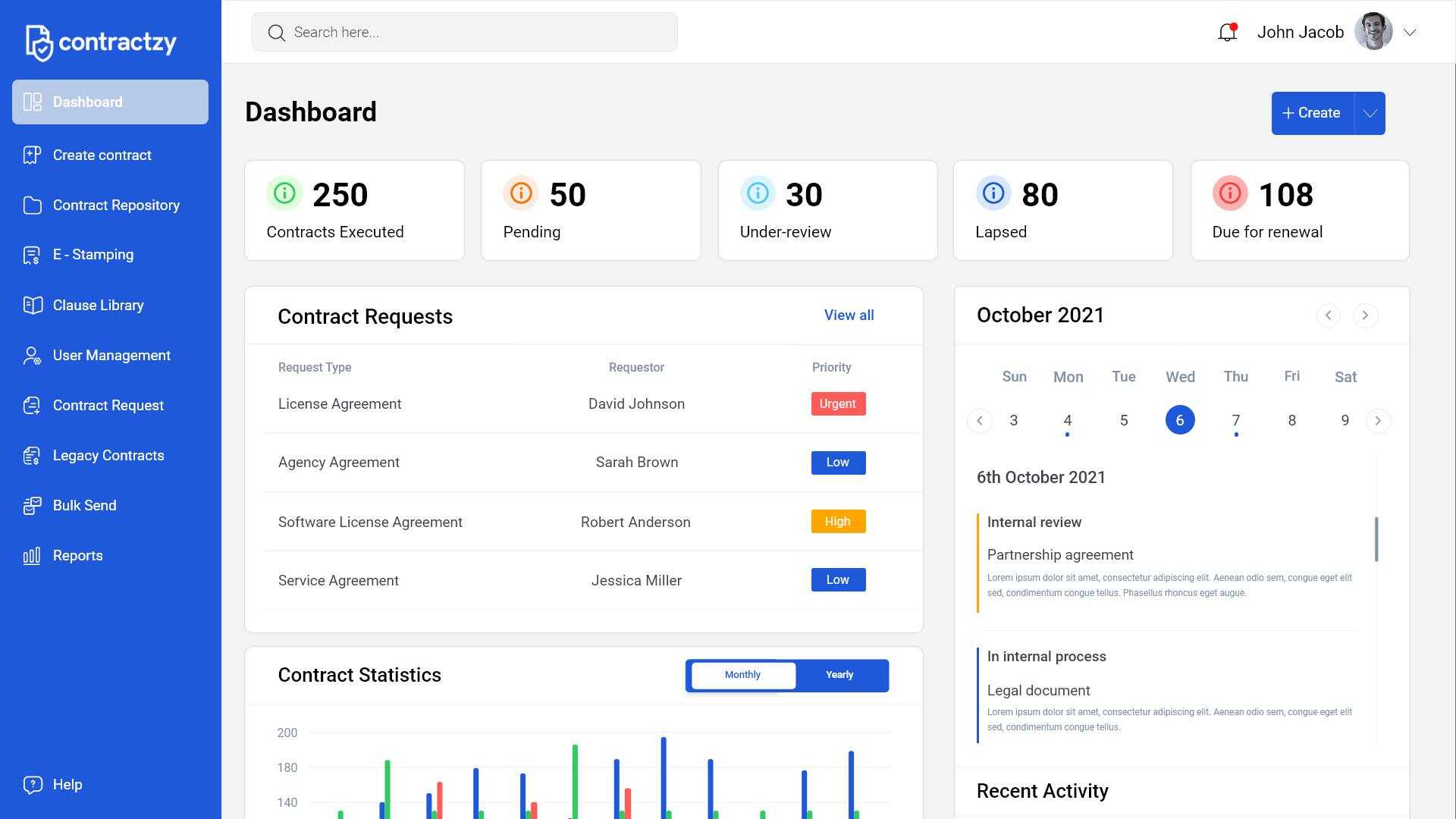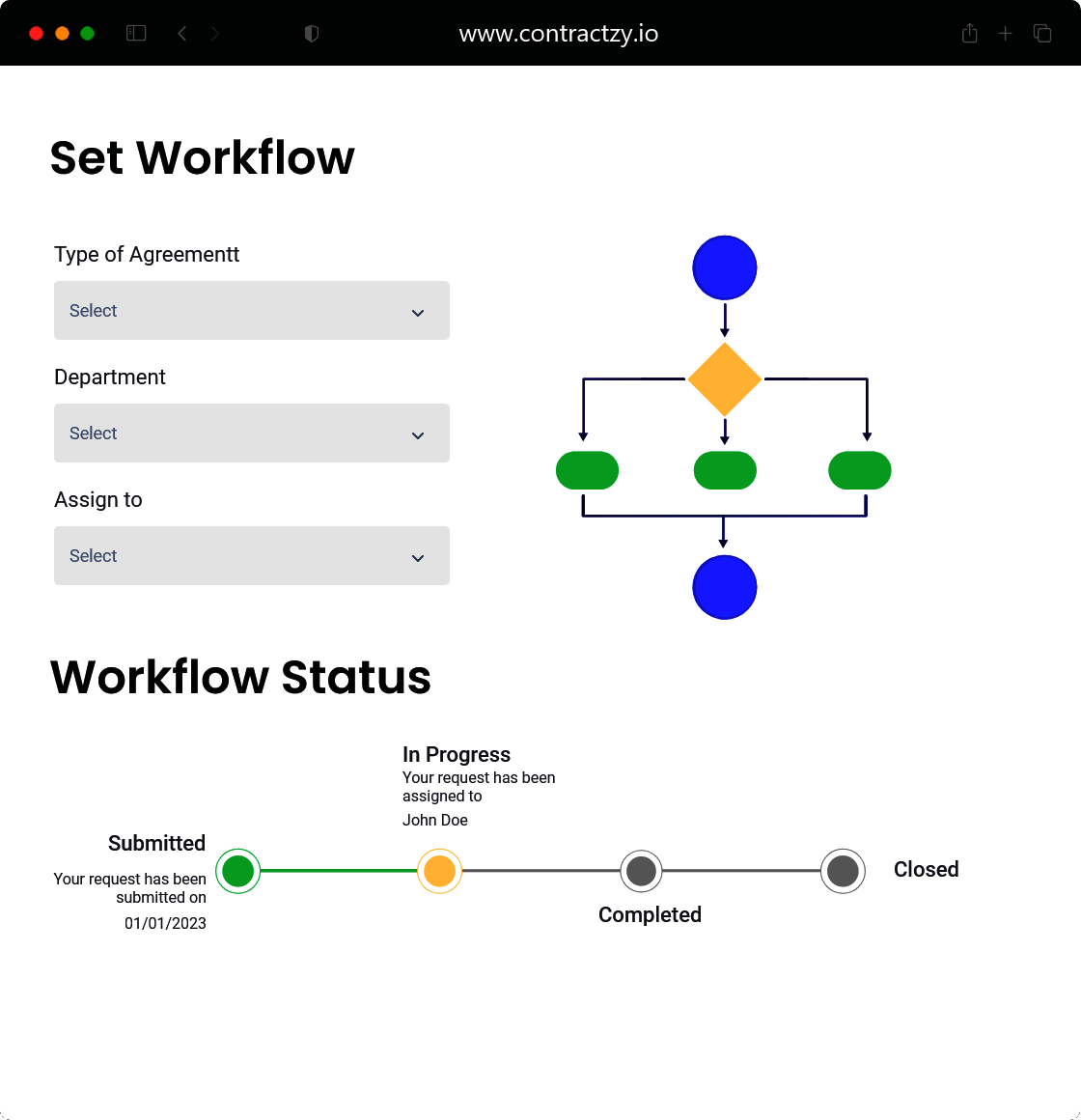 Contractzy's CLM platform is a state-of-the-art system that simplifies the entire contract lifecycle, from creation and negotiation to execution, monitoring, and renewal. It offers an array of features, including contract drafting, e-signatures, digital stamping, automated workflows, robust analytics and more, all aimed at enhancing visibility, control, and collaboration in the contract management process.