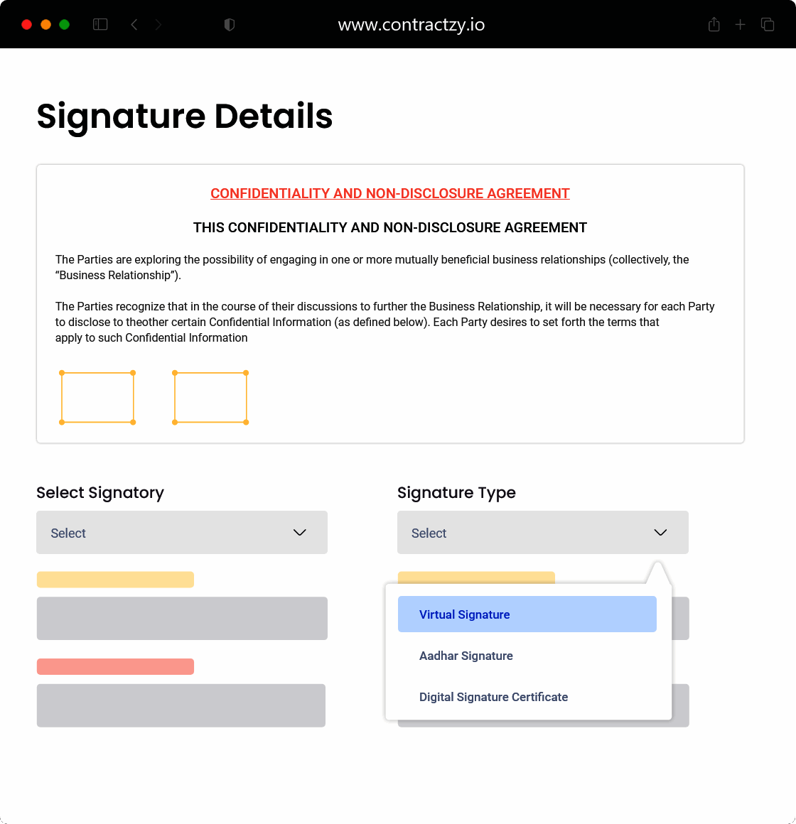 Contractzy is commonly used for various purposes, such as Digital Signature, Document Tracking, Electornic Signature and more.
