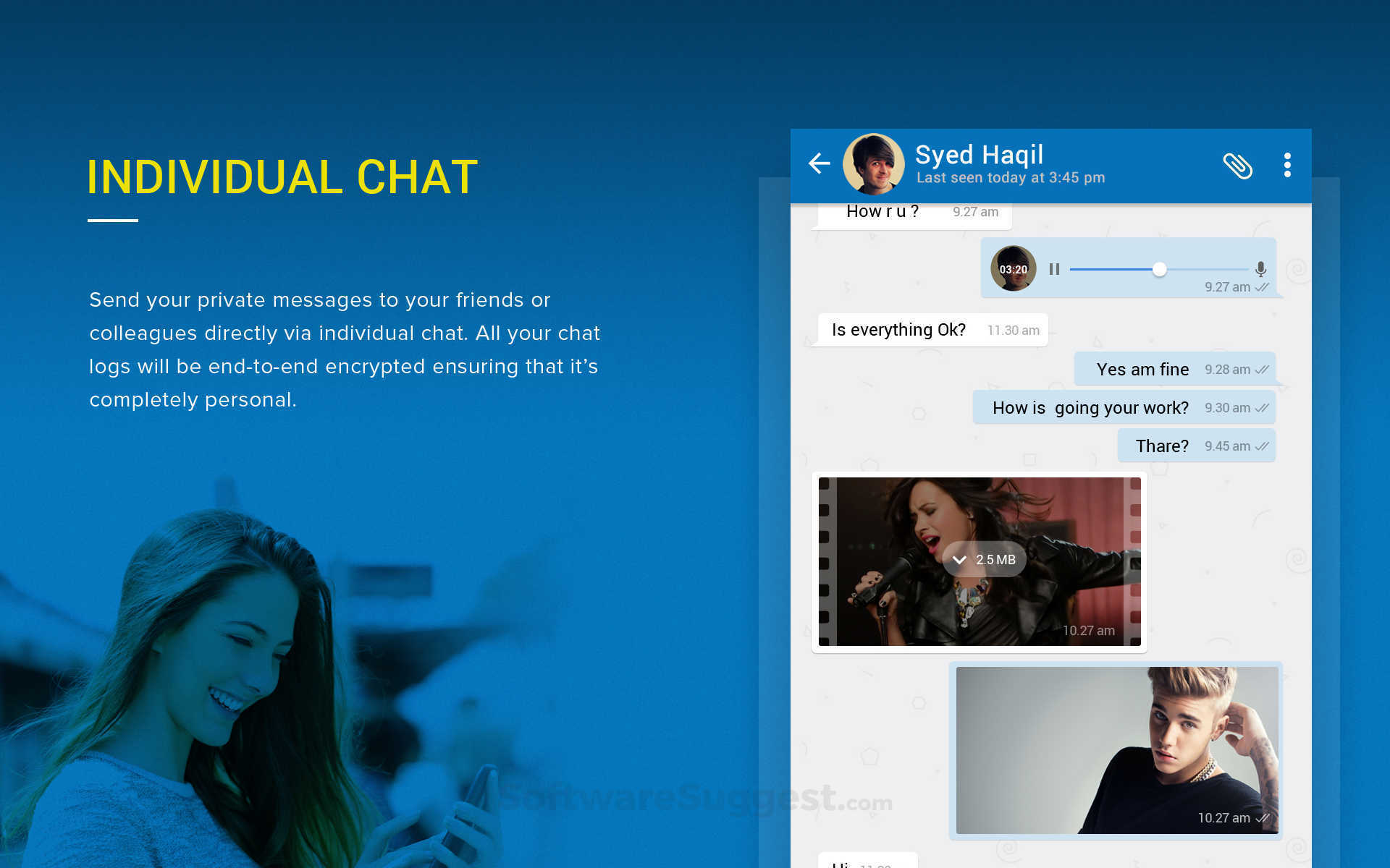 Contus Fly is an instant messaging app building solution that can help enterprises plug their communication woes with a real-time team chat app. The chat app can be integrated with features for voice calling, video calling, geo-location sharing, file sharing, tasks, etc.