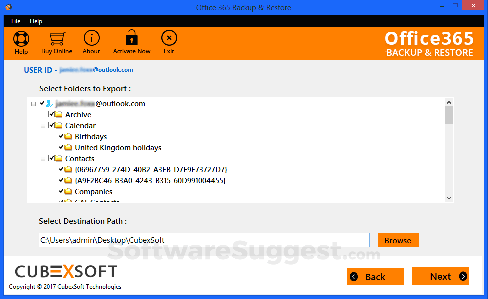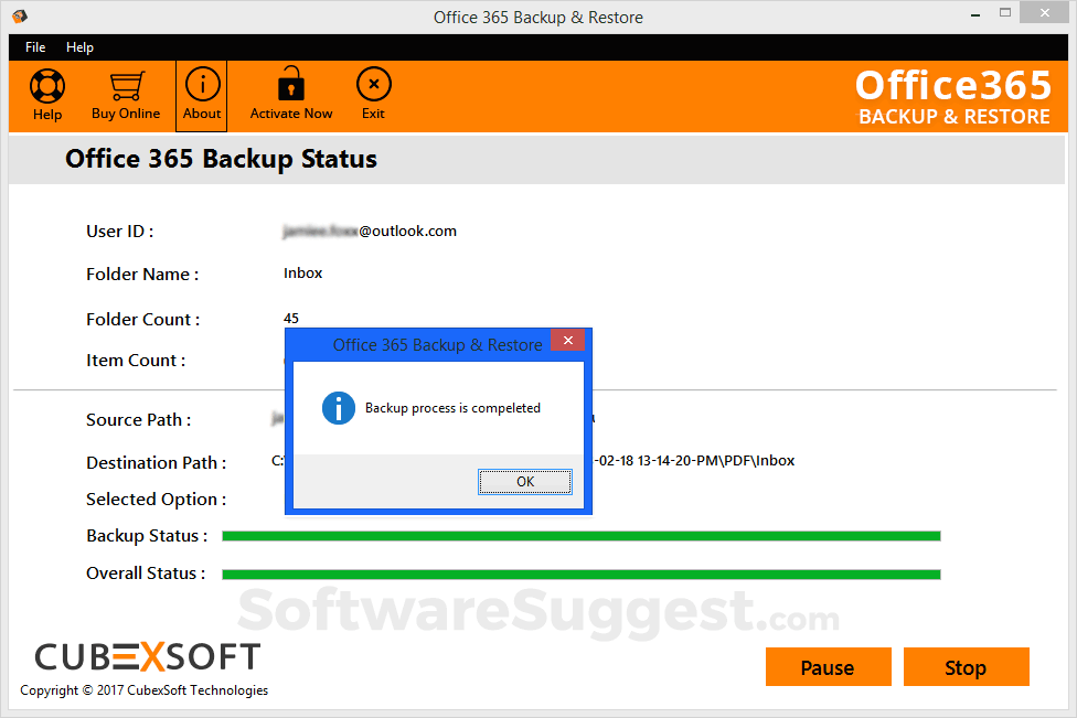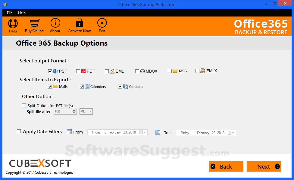 CubexSoft Office 365 Backup Tool is an advance solution to save Exchange online mailbox database to different popular file formats. The utility supports exporting of Outlook OWA webmail data to PST, PDF, EML, EMLX, MSG and MBOX. Its simple GUI is very helpful for both technical and non-technical users to use the software with complete effortlessness. The tool supports Application Impersonation option, which allows Office 365 administrators to save backup of unlimited cloud based user profiles in a batch, locally.