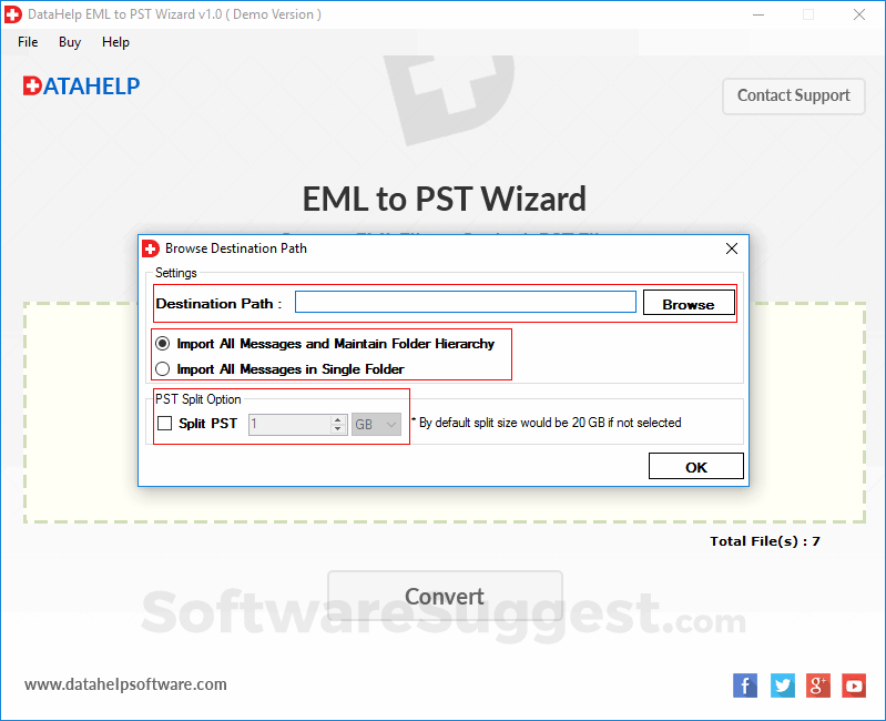 Create a single PST file – DataHelp EML to PST converter tool allow you to convert entire EML files into a single PST, you can export entire EML files with all properties & save into a single Unicode PST file. This option will help you to import all EML files into Outlook email application at a time.
