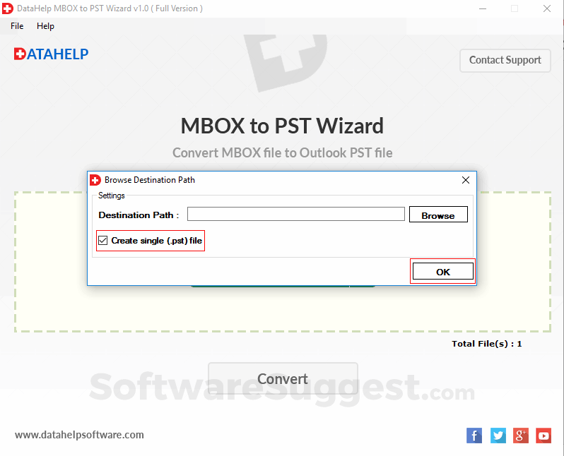 - Create a single PST File - This option allows you to convert multiple MBOX files into a single PST format. By using this option user can create a single PST file for all .mbox files.