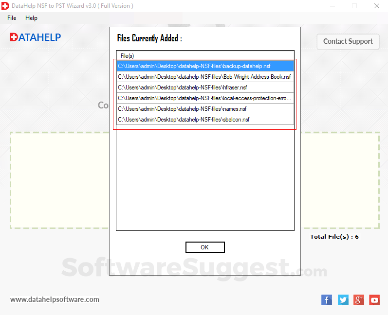 The available support which DataHelp NSF to PST Converter provides is:
