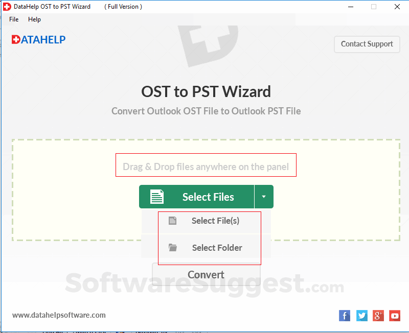 The available support which DataHelp OST to PST Converter provides is: