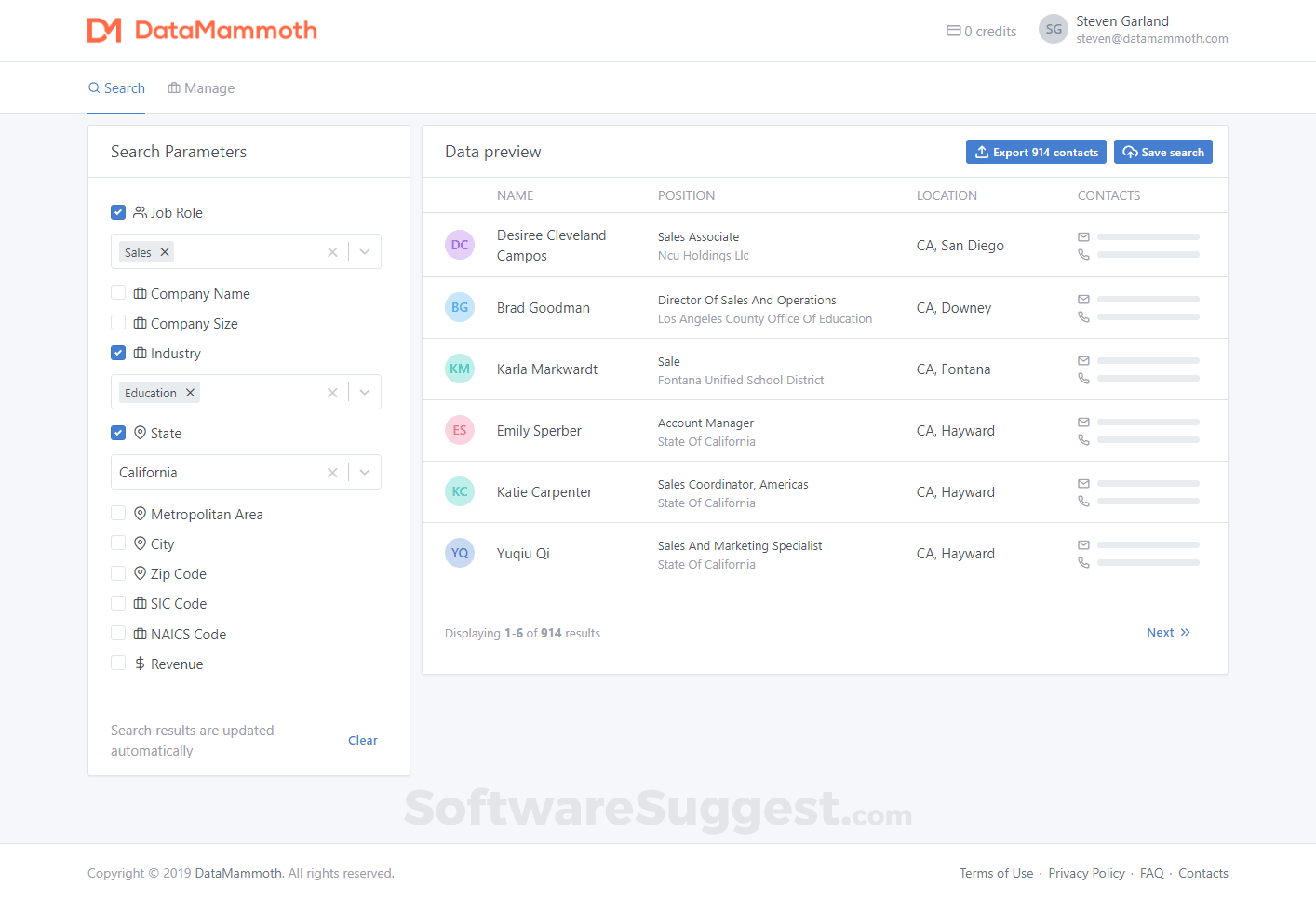 You pick who you want to find. We deliver the data that matters for your business. Sign up for DataMammoth today and get 100 free leads.
