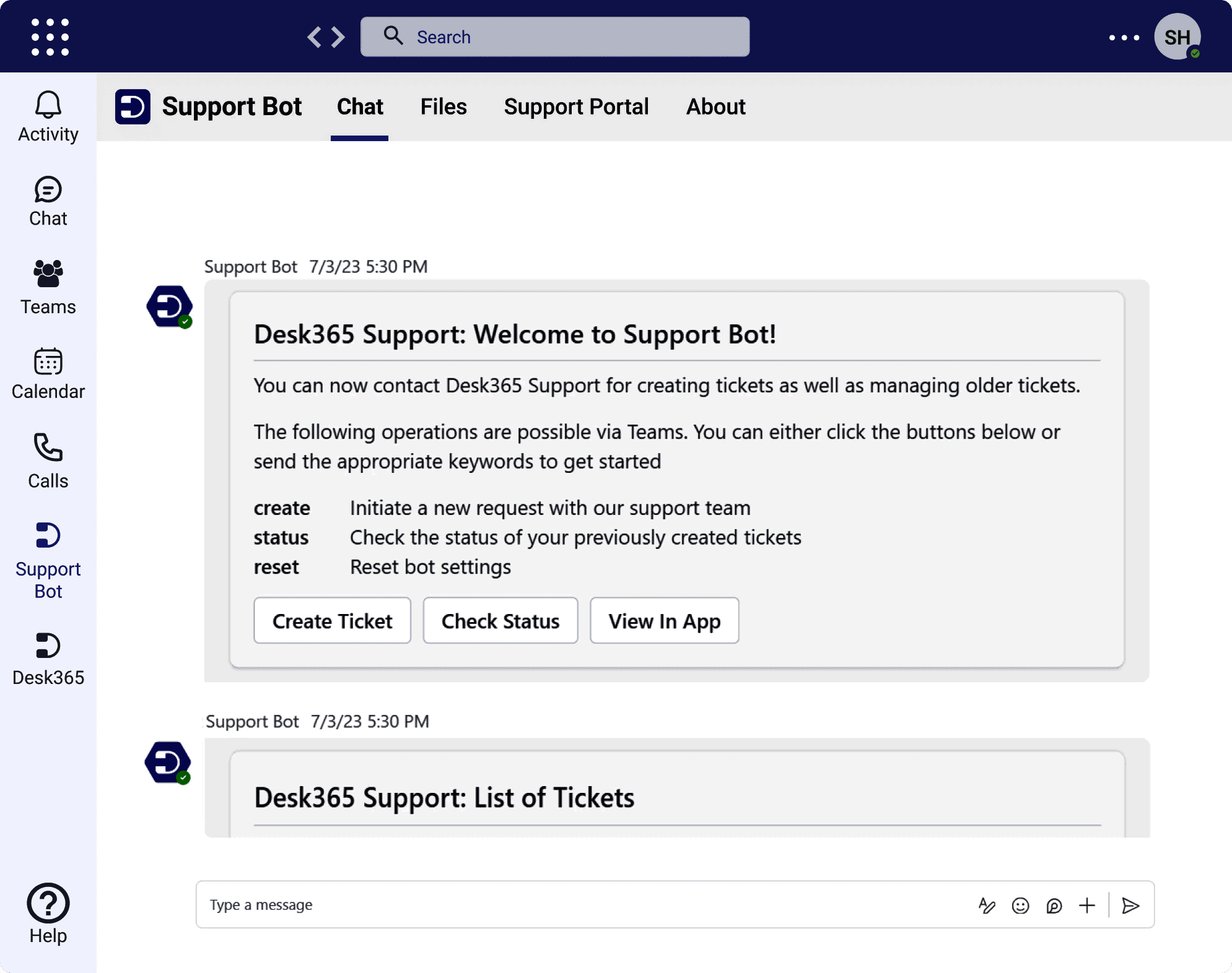 Desk365 is a popular cloud-based modern helpdesk for the Microsoft 365 workplace that helps you deliver excellent customer service through omni-channels like Microsoft Teams, Email, Web Forms/Widgets, and more which are convenient to your customers. Desk365 is a simple and conversational Microsoft Teams ticketing system, to manage all your customer conversations in a single interface. Desk365 also works well both as an external customer facing helpdesk as well as an internal helpdesk to service employees and as an ITSM solution.
