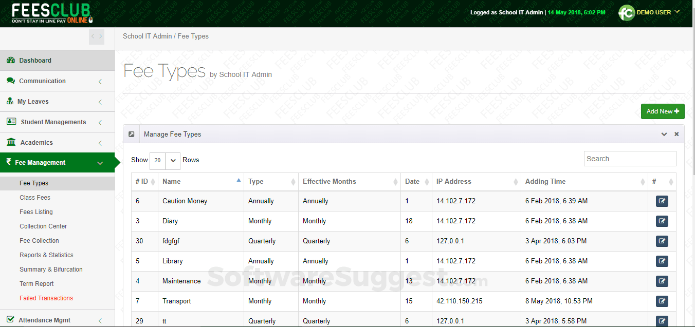 - Fee Management: online fee collection