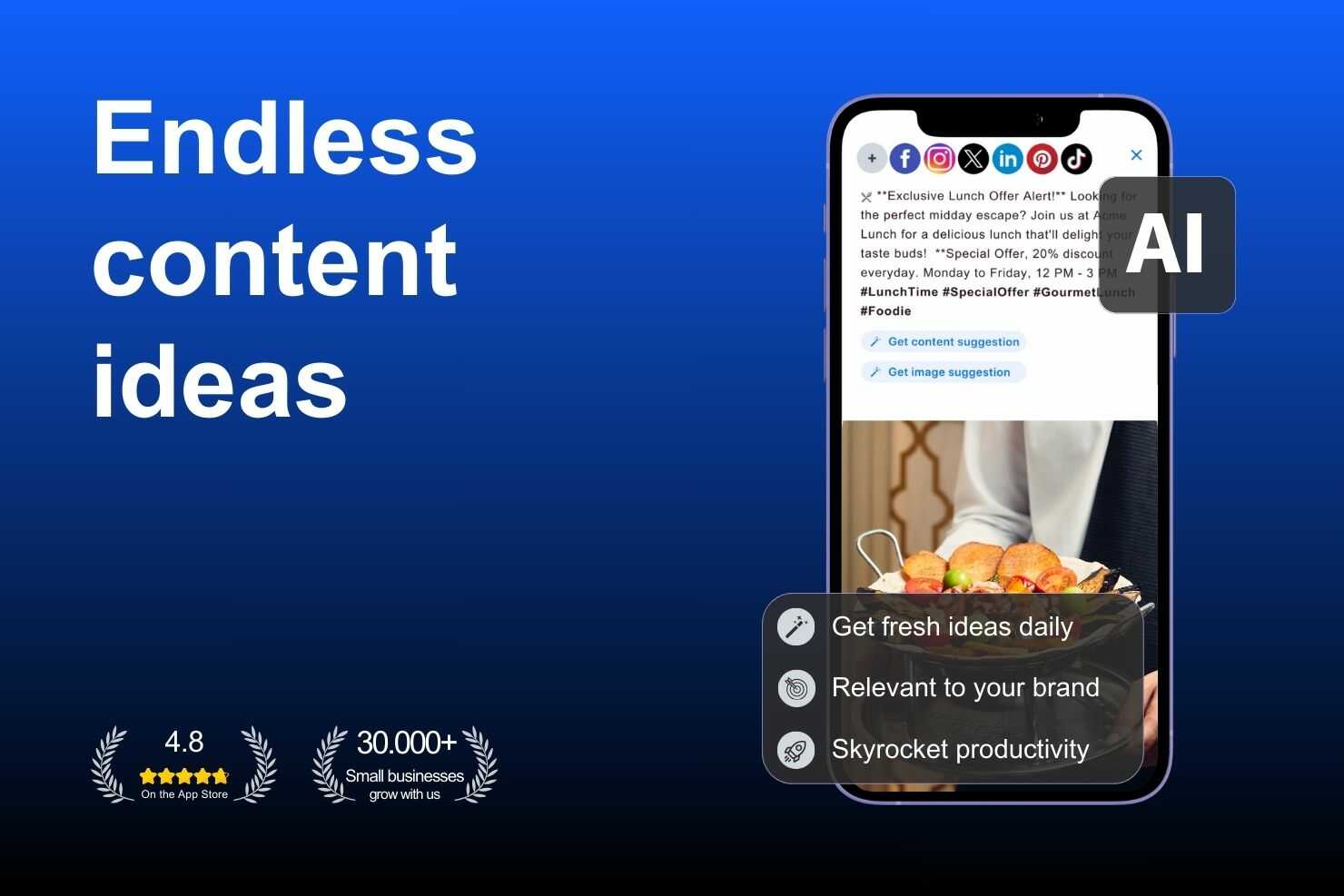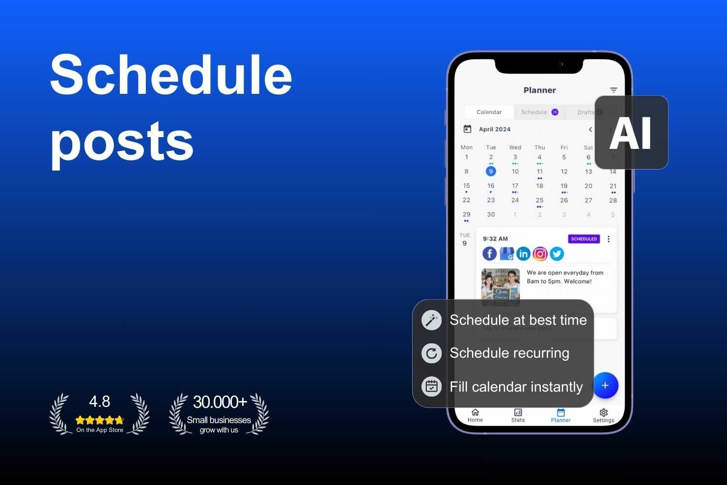 The app is extremely easy to use. Im able to post on all my socials in one go. The content suggestions help, as well.