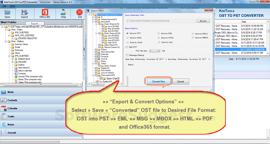 KDETools OST to PST converter is advance tool which has multiple features to make Batch OST Mailbox conversion process easy or convenient. This tool is designed with easy-to-use GUI (Graphical User Interface) to that any (technical or non-technical) user can easily operate it without any assistance.