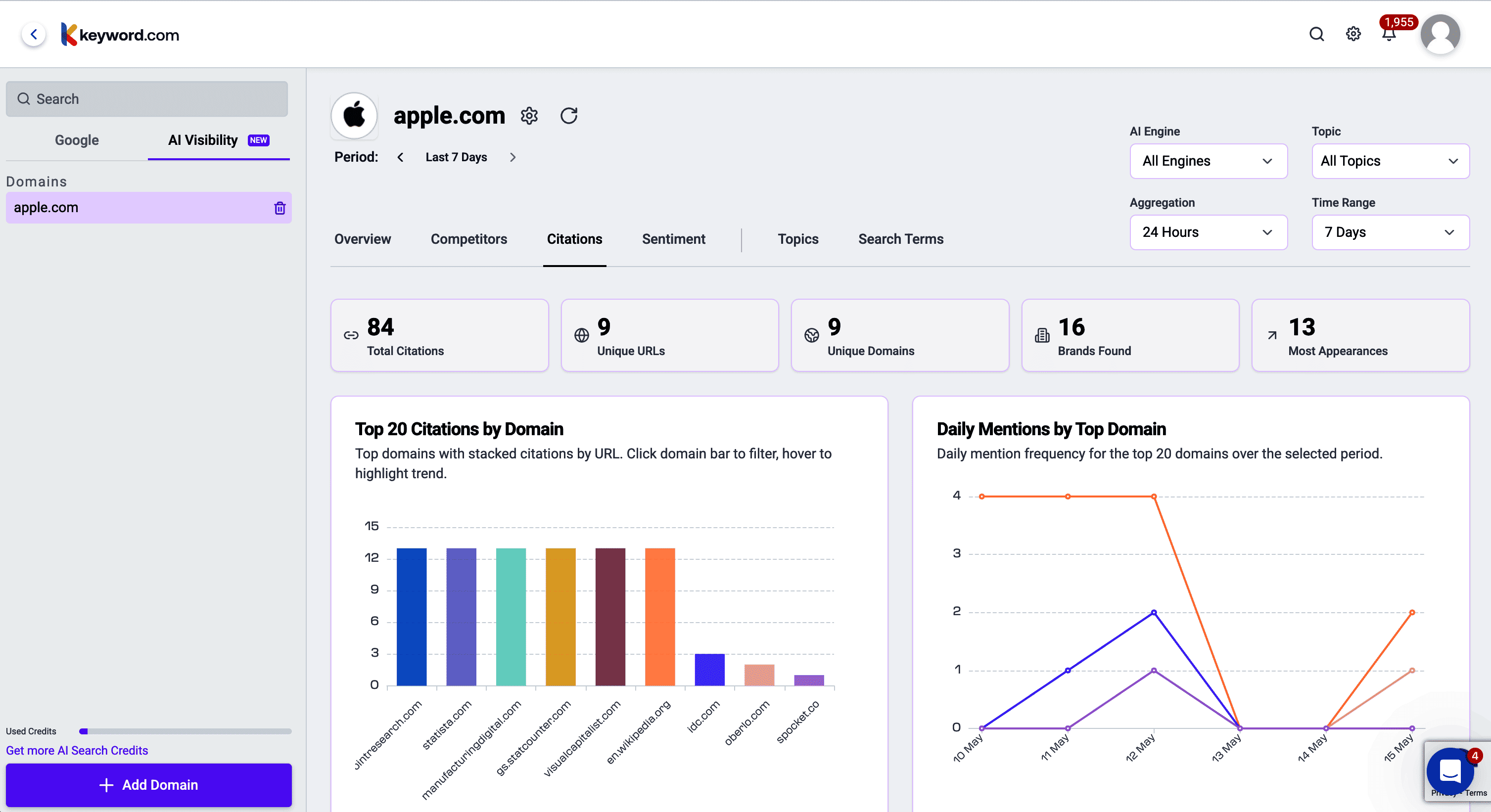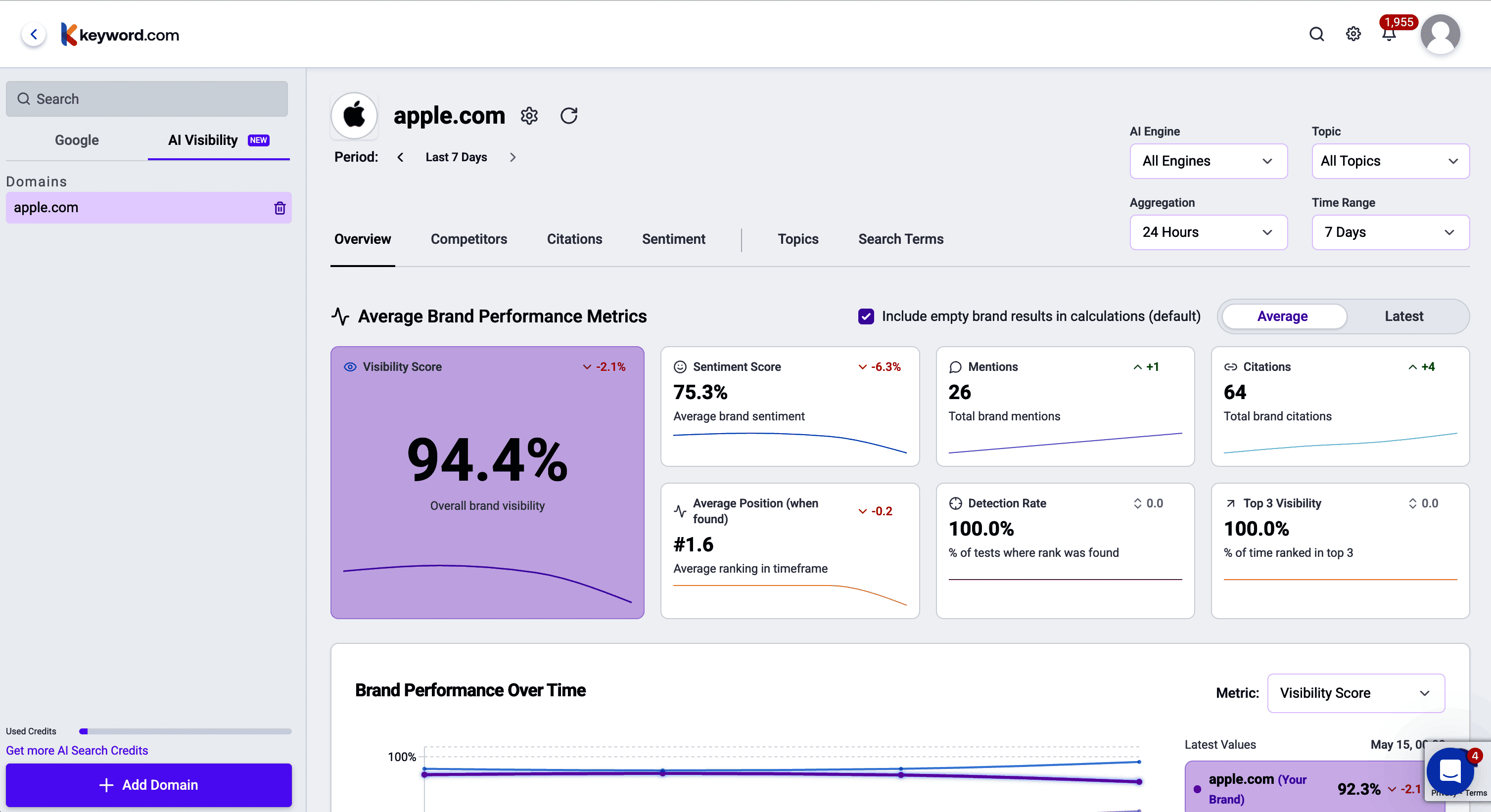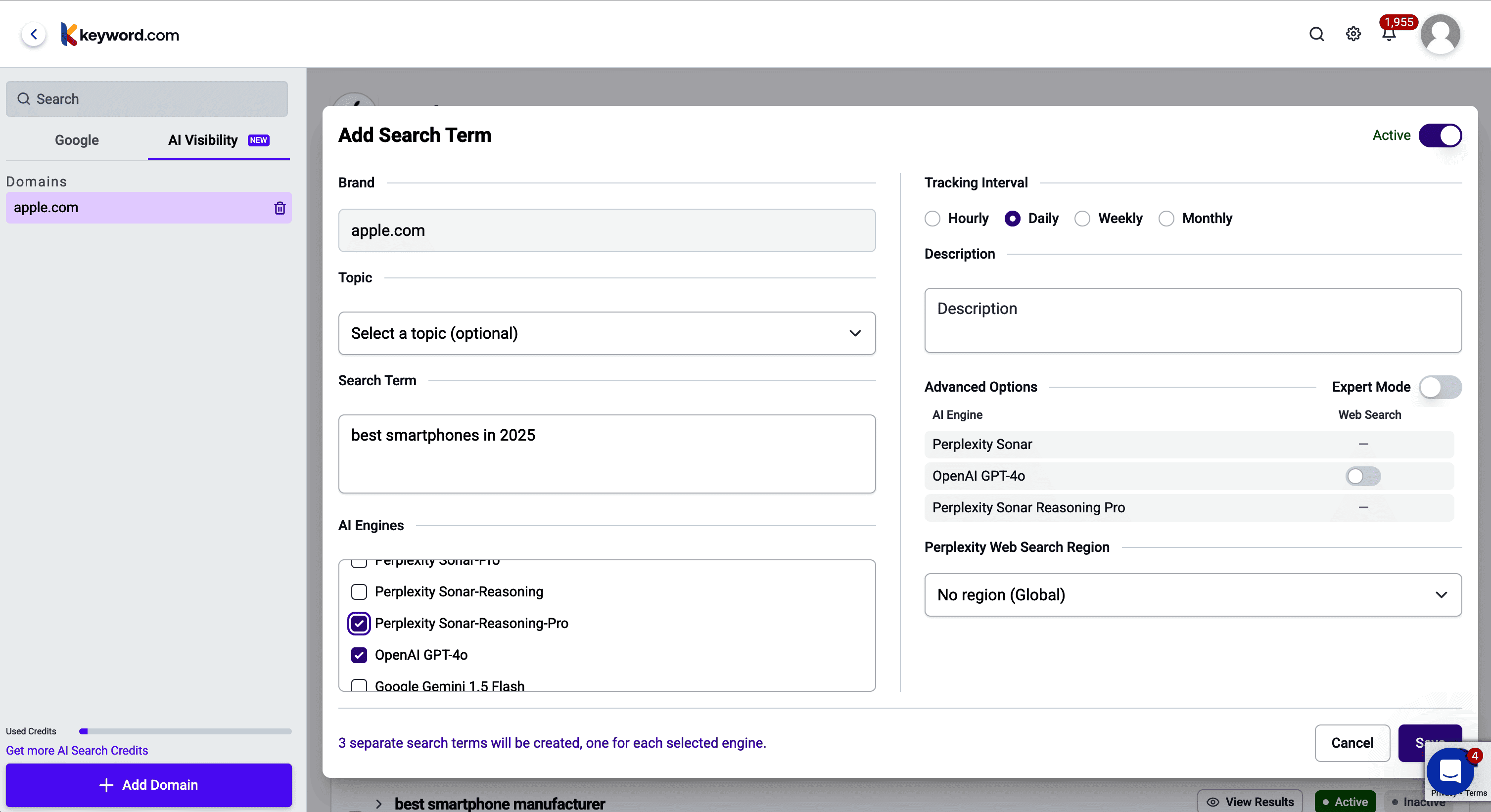 - Perplexity, ChatGPT, AI Overviews, Gemini, Msitral, DeepkSeek, Claude tracking
