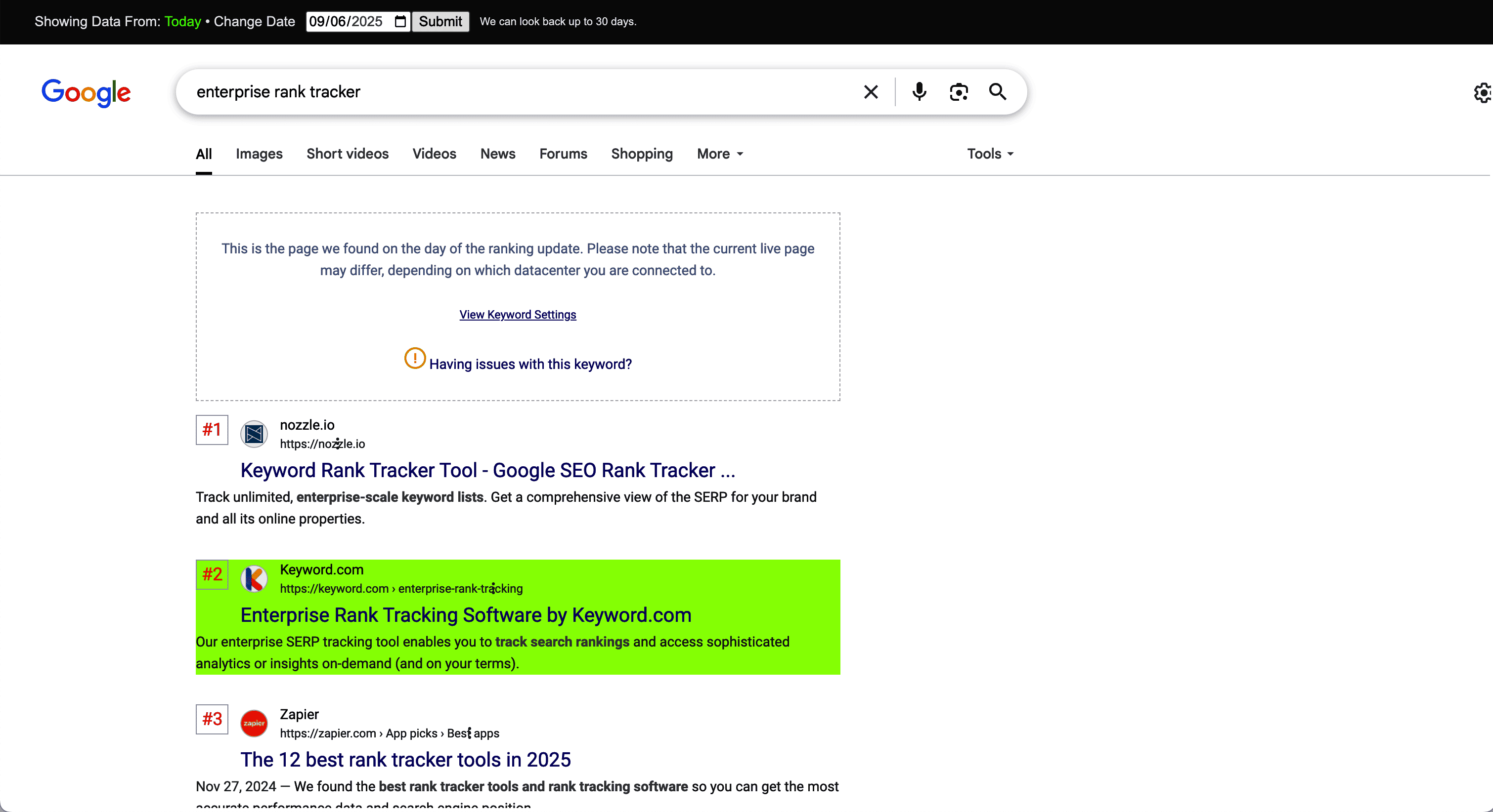 We help SEO professionals track and verify their keyword ranking in the Google SERPs. With features to track your competition, view historical rankings, see your share of voice and more.