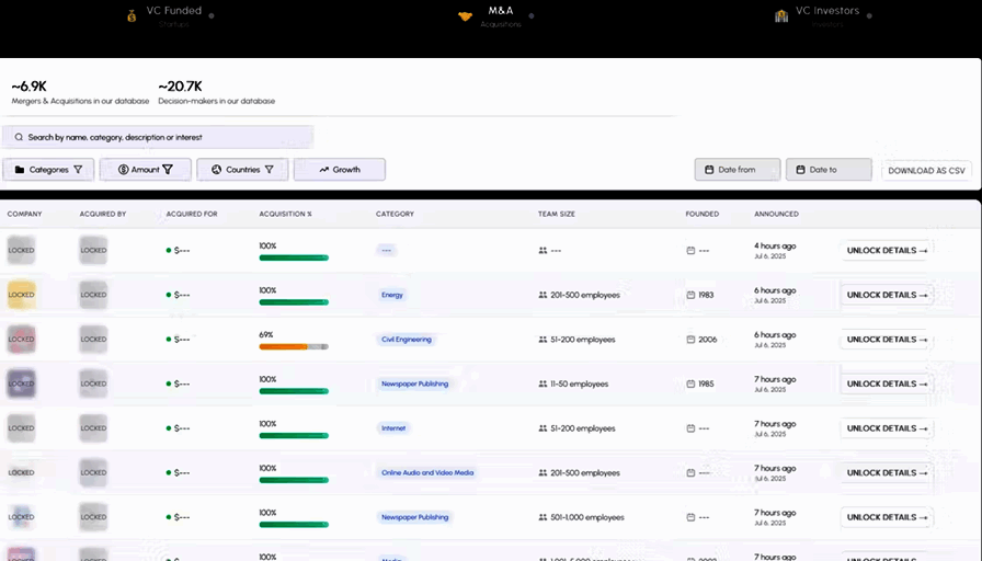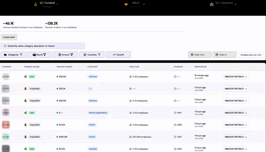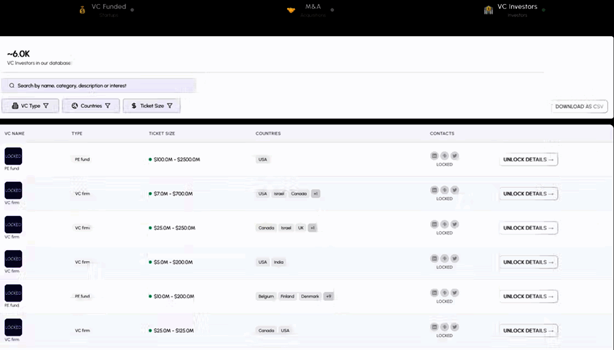 - Complete VC funding database (40,000+ companies)