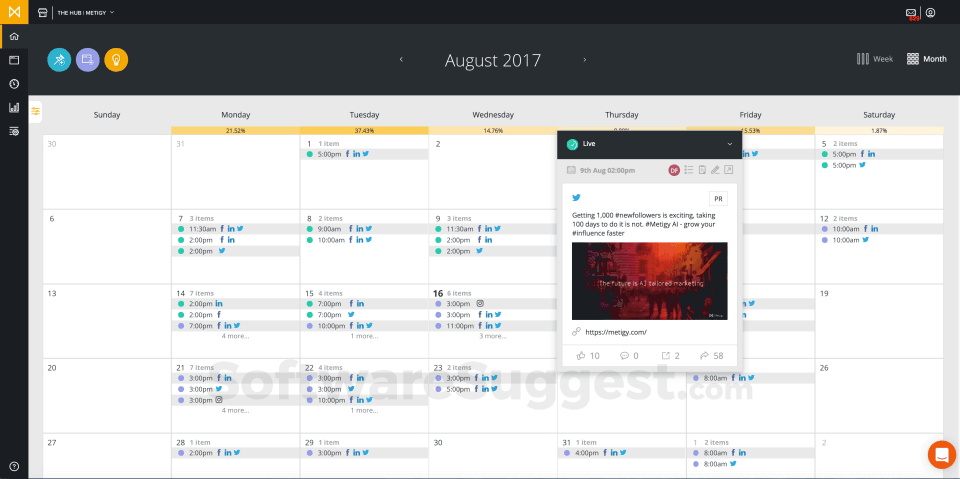Metigy is modern AI software for utilizing social marketing to the fullest. It has advanced modules that help you generate unique ideas to derive the best out of social media pages on different platforms. It is easy to learn and has an intuitive interface.