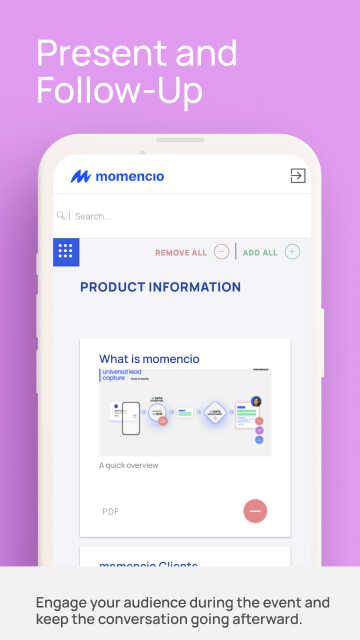 momencioCapture leads with badge scanning, QR code scanning, or business card capture, and integrate seamlessly with CRM systems. Share on-demand marketing assets—directly within the app. Show More