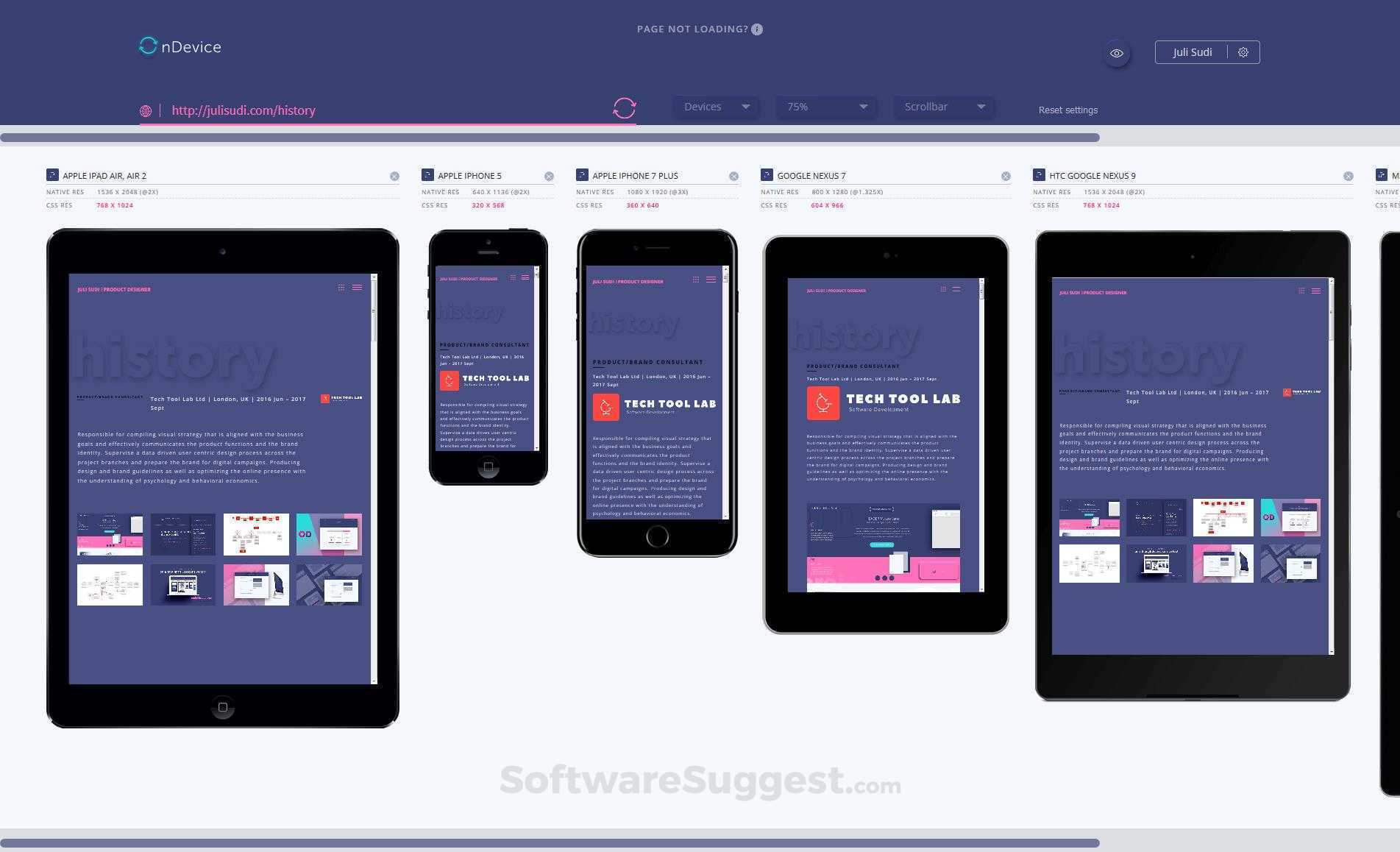 OnDevice is an online presentation tool made for web design and digital marketing agencies to showcase the benefits of responsive websites to their clients. OnDevice gives you an interactive collection of realistic-looking mobile phones, tablets, notebooks, and monitors to show you how your website looks on today's most popular devices.
