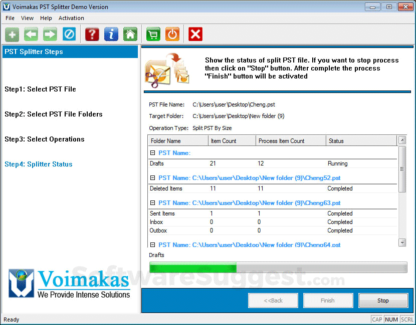 Download Trail Version of PST Splitter tool offered by Voimaks Software that allows you to free split 20 Items per folder of PST files. If you want to split entire PST files with embedded all email attachments, try pro version of the PST Splitter software at reasonable price.