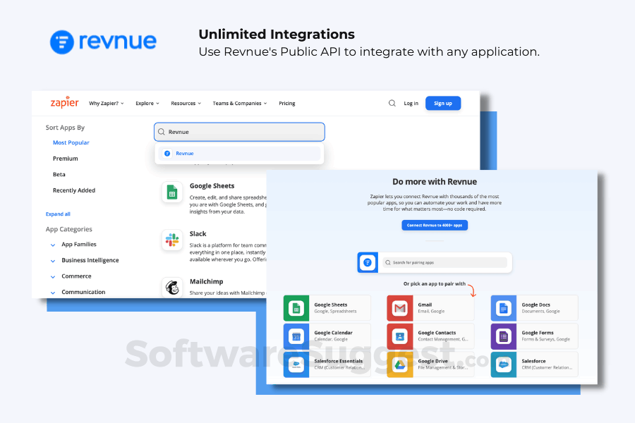 Revnue integrates with various apps: