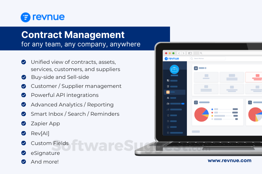 Revnue is an AI-powered digital contract management platform that is transforming the way enterprises manage their contracts. The platform leverages advanced AI/ML technologies and self-learning capabilities to streamline and simplify the contract management process, empowering businesses to leverage contract intelligence for strategic planning, digital transformations, and operational efficiency. Alongside next-generation contract management features, Revnue also offers integrated asset and supplier management capabilities.