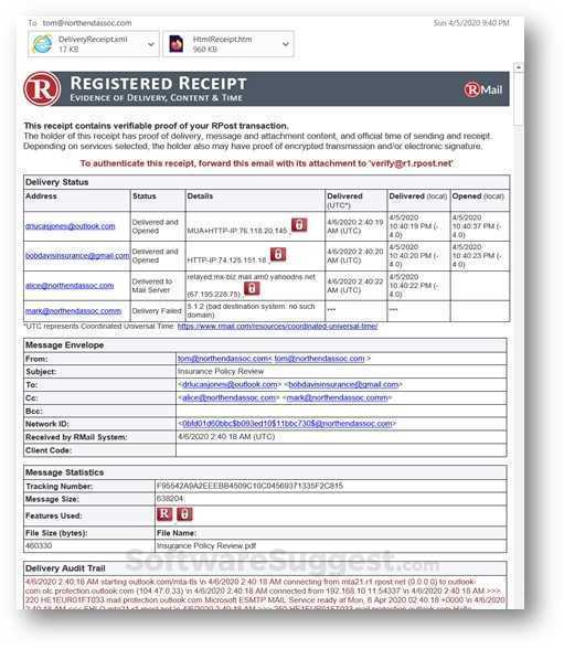 The RMail service extends email program to track important emails and acknowledges precisely when they’re delivered and opened. It shows the email time of delivery, delivery, and specific content of a Registered Receipt email record that’s automatically generated with every RMail message.