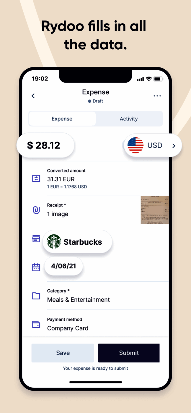 company policies. Its intuitive platform simplifies expense reporting and approvals, making it ideal for businesses seeking efficient and accurate management of travel expenses. Rydoo app works effectively on Android devices.