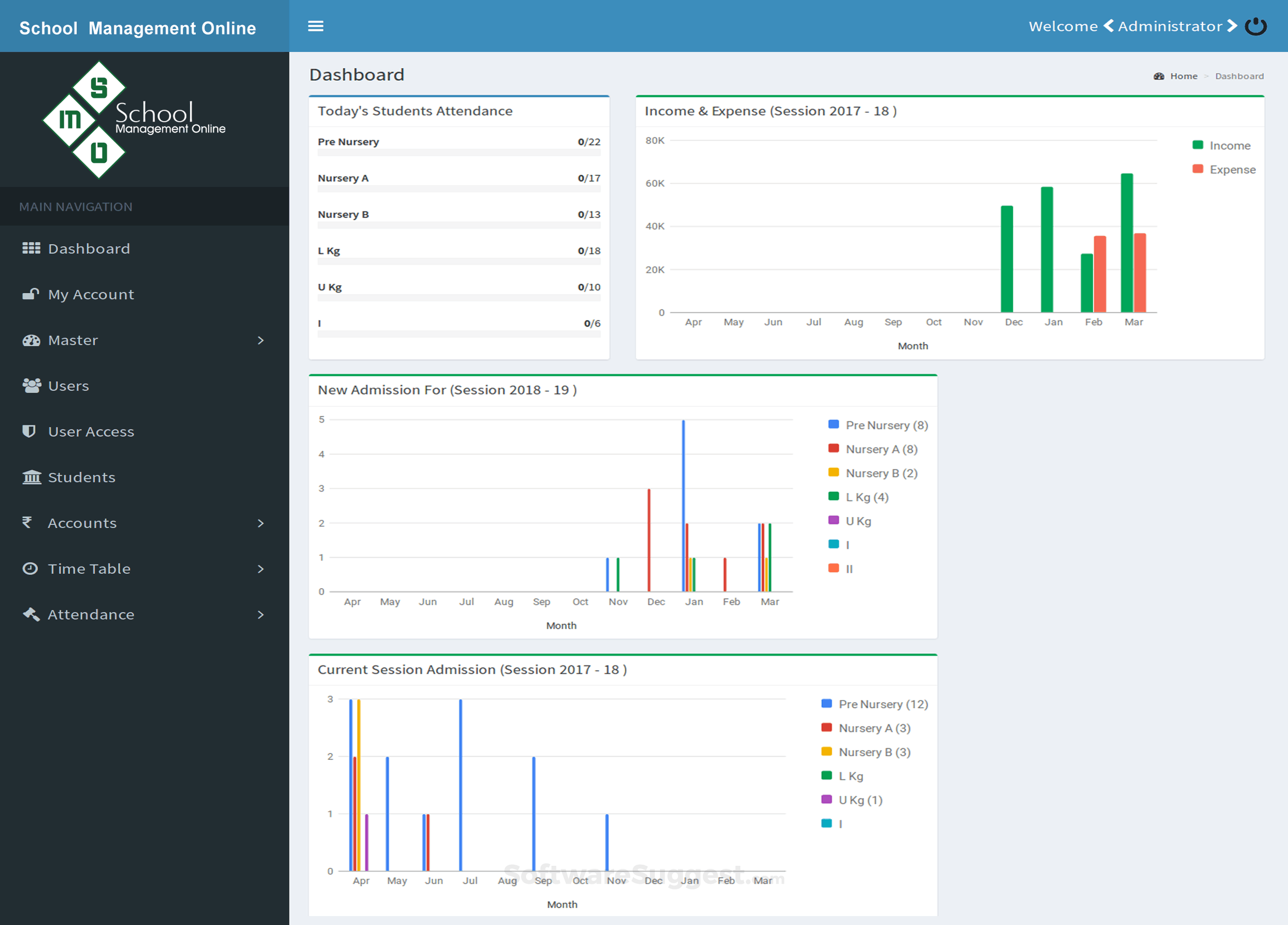 Online School Management System aka Online Kindergarten School Management System or School ERP which incorporates features like Admission, Fee collection, Reporting, Student & Staff data management plus Academic processes like Attendance & Timetable which automate School Diverse Operations. Full customization can be done based on school requirements.