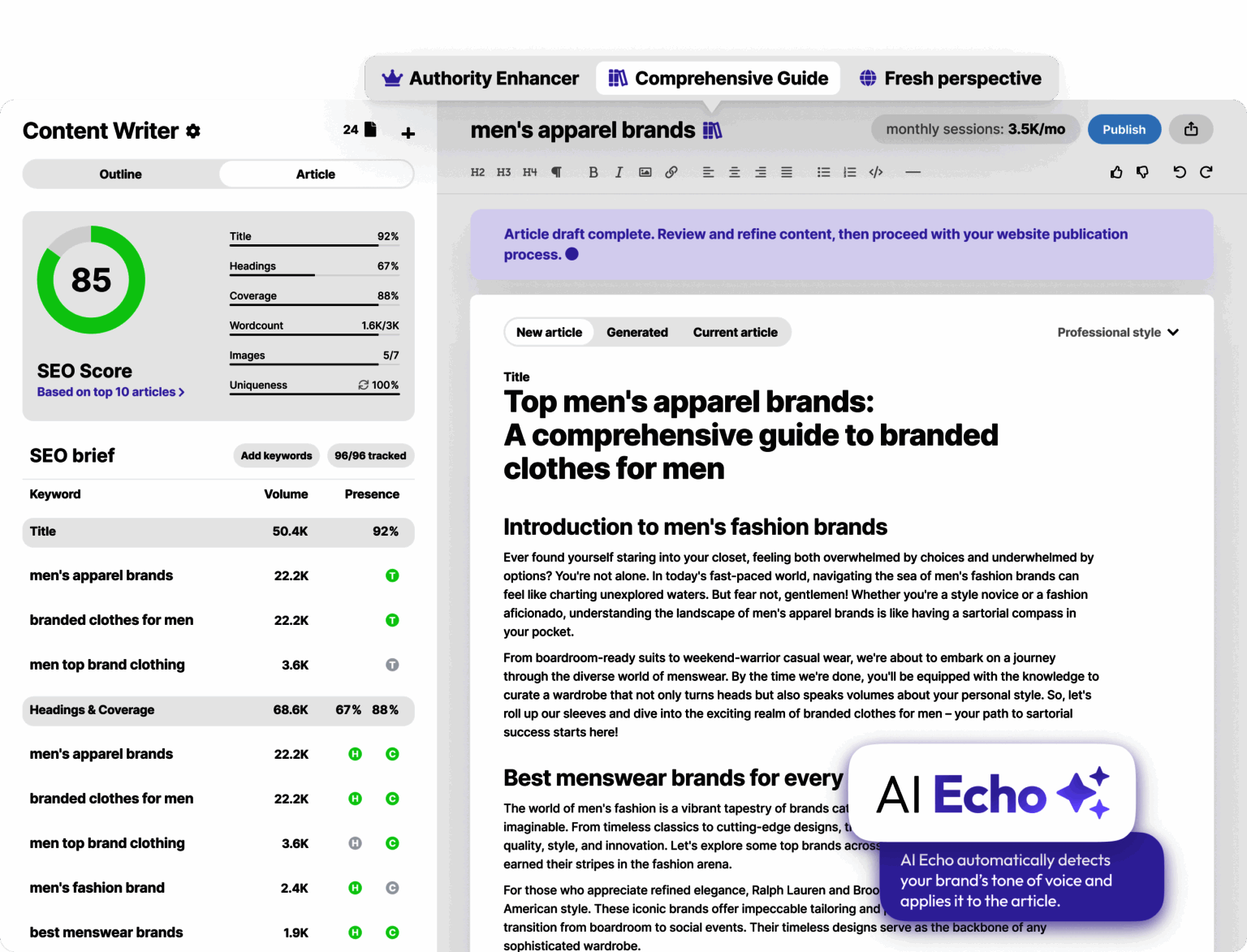 ?SEOmonitor is an intelligent SEO platform designed to help teams scale their organic growth in today's search landscape. It combines SEO data expertise with AI capabilities, offering features like AI Content Writer, AIO Tracking, and SearchGPT tracking. The platform provides accurate data through curated keyword sets, precise daily ranks, and enhanced tracking systems, ensuring data integrity.