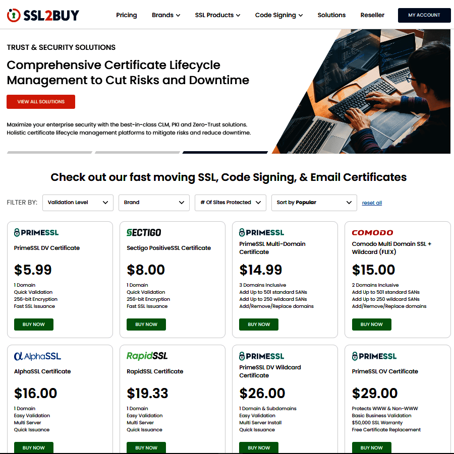 SSL2BUY is the most affordable SSL certificate provider in the market.