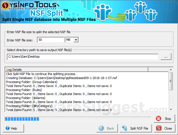 SysInfo NSF splitter tool offers services that help to reduce the size of Lotus Notes. As the large size NSF file cause the application pauses which ultimately going to hamper the performance. This tool split the large NSF file to small multiple NSF files and it maintains the data in original form. As it is well understood that the large NSF file course the poor performance in Lotus Notes. Sometimes large NSF file causes the corruption issue too. That's why for better optimization we use NSF splitter. This tool has some useful feature too. The user can split the NSF file into three different bases: user can split by Date, by size, and by the sender's ID too. This tool maintains the integrity of data in the whole splitting process, the user won't find a single variation of data after the split. The NSF split is very easy and reliable to use, and it gives the option to save split NSF file at desired location. This tool is compatible with all latest and major version of Windows and IBM notes.