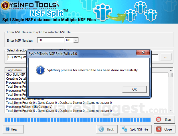 SysInfo NSF splitter tool offers services that help to reduce the size of Lotus Notes. As the large size NSF file causes the application pauses, which ultimately hampers the performance. This tool splits the large NSF file into small multiple NSF files.