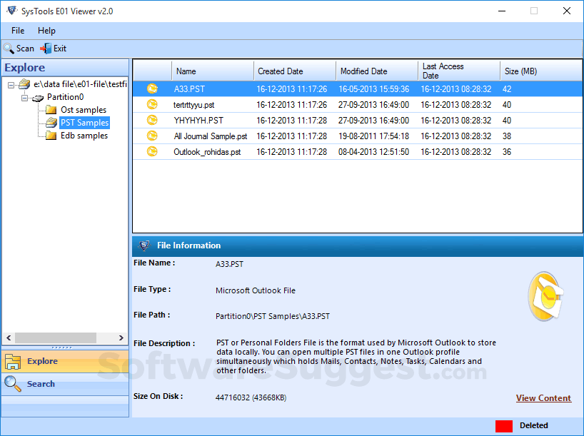 The free E01 Viewer is a free and secure tool to scan and load multiple E01 files with all items present in it. A user can view the E01 file?s items with its attributes such as file type, file name, file path, created date and size in MB. SysTools Free E01 file viewer will scan and load E01 files with present EDB, PST or OST mailbox in it. A user can view the mailbox data (emails, contacts, calendars, tasks, journals) by using the View Content feature. For each mailbox, there is an inbuilt file viewer available like PST viewer, EDB viewer, and OST viewer. E01 file may contain the replica image of any system?s logical or physical hard drive. Now, a user is opening an E01 file with E01 file reader, having the complete image of systems logical drive. The free E01 file opener software will show all the partitions and content in its original format without loss of data. The E01 file viewer application is equipped with the searching option which resembles the one in Windows search. Using the Search option a user can use any text or term or file extensions to find data within the E01 folders. Also, it is possible to set a specific date range with "From" and "To" dates and search emails falling within the specified date range. Selective E01 files can be loaded on the software according to users? convenience and requirement. Using Add File option a user can get the desired E01 file loaded on the software and perform analysis of its contents and searches within its components
