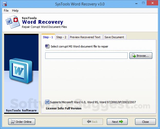 SysTools Word recovery software is an efficient tool to repair and recover damaged Word files of Microsoft Office 2013, 2010, 2007 versions. This software allows the user to recover Word file text or images easily. With the help of this software, the user can repair the highly corrupted Word file irrespective of the reason of corruption. To repair Word file this software doesn't require MS Office installation.