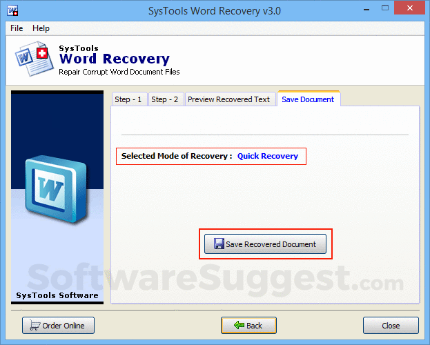 In order to recover corrupt Microsoft Word file, Word file recovery software follows three main steps. Firstly, a scan and analysis of the entire Word file are done then a preview of text or recovered image being generated. The users can easily view the doc file with its complete data and actual formatting intact after the recovery process.