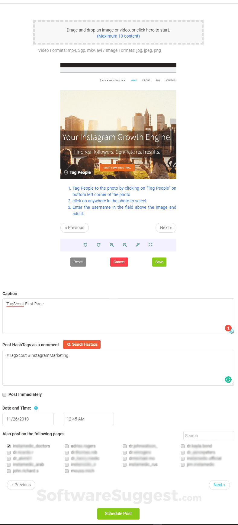 TagScout is an Instagram growth engine. It automates the flow of your Instagram tasks (follow/unfollow, auto DM, etc.). You can also manage your Instagram from your computer (scheduling, Instagram inbox in email style, hashtag research, etc.).