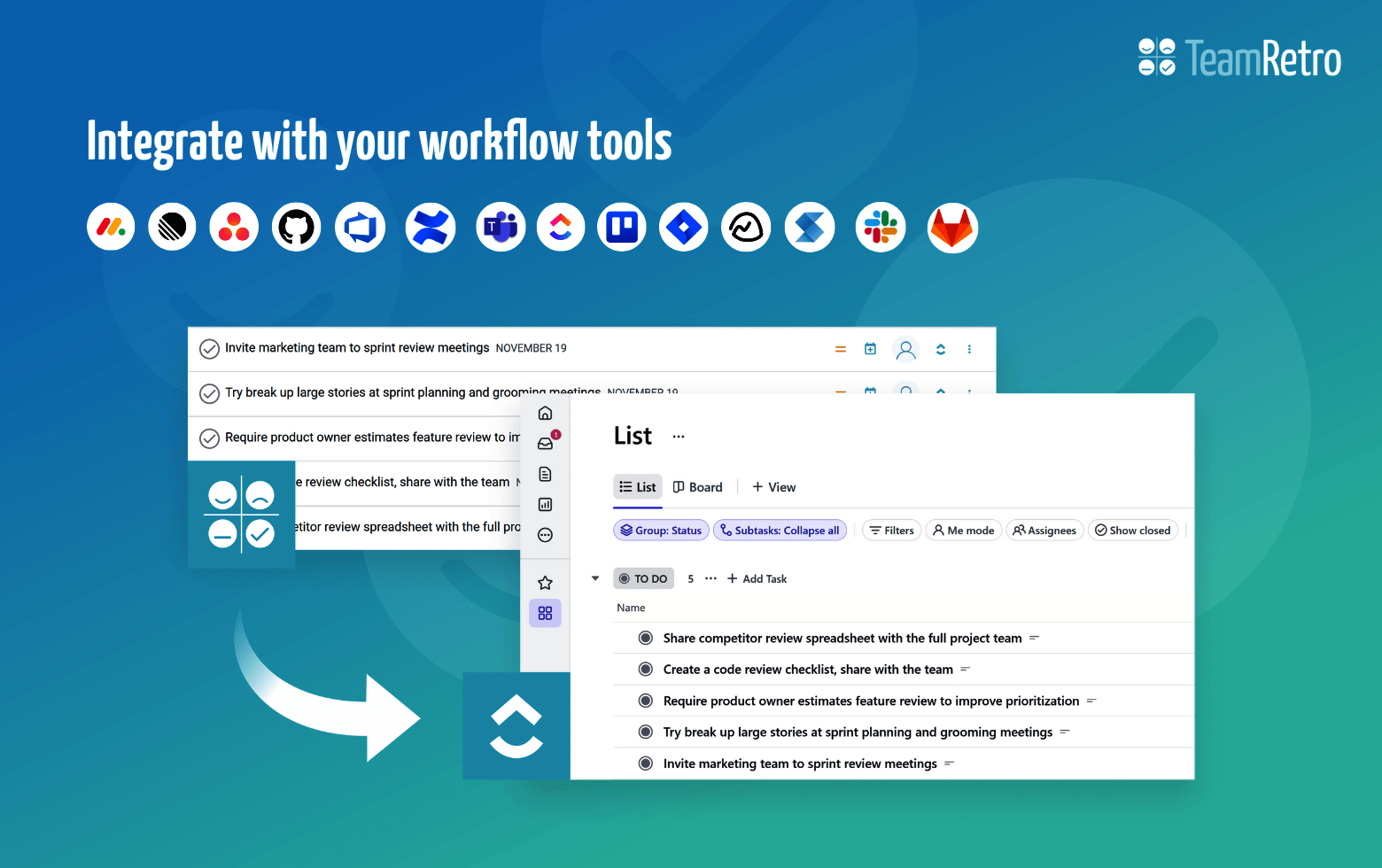 TeamRetro integrates with various apps: