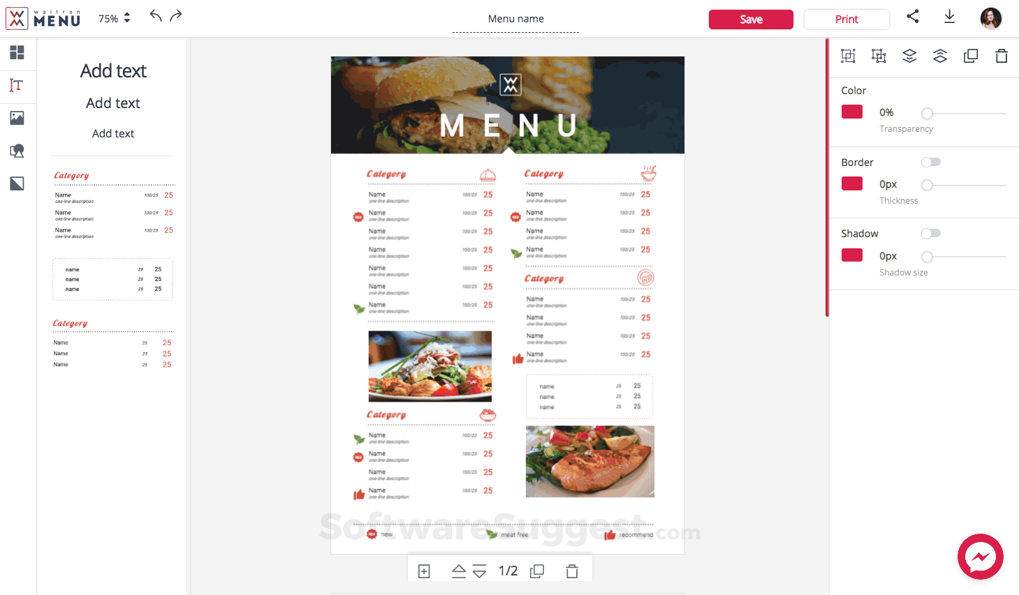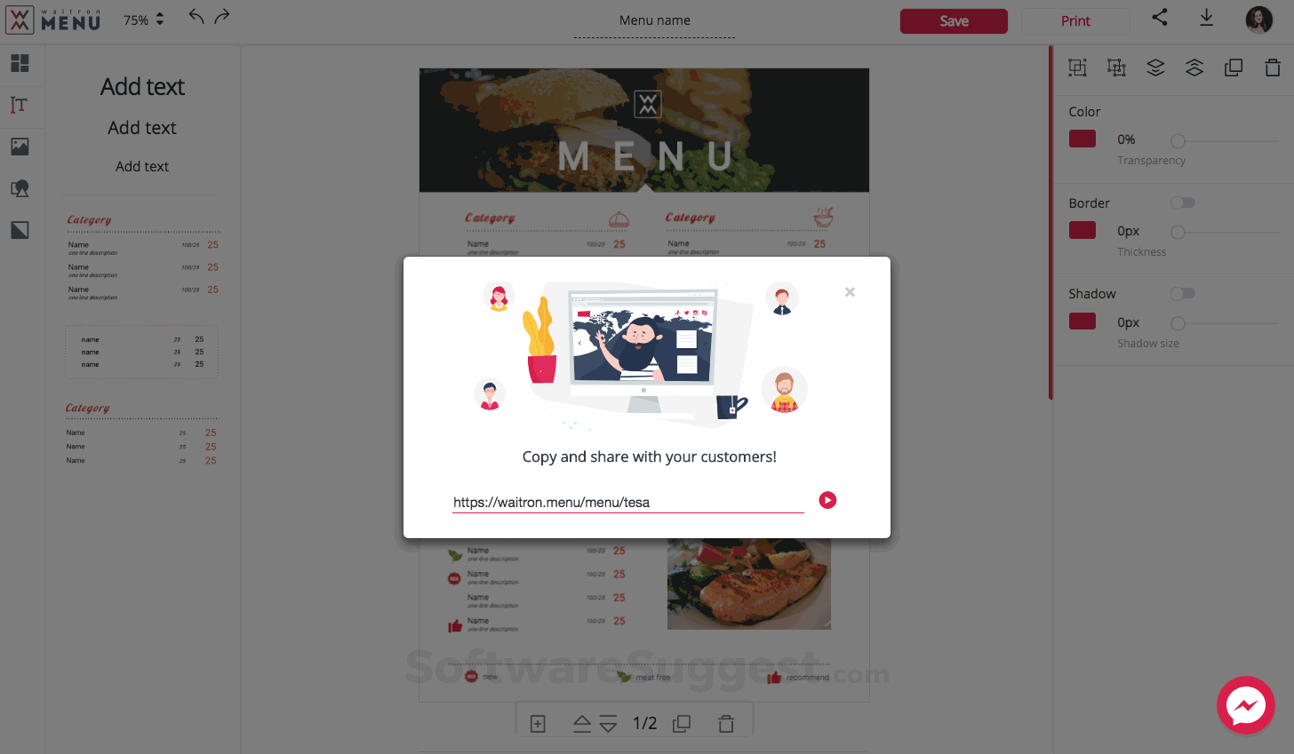 WaitronMENU is a simple and easy-to-use online menu maker that helps users create amazing designs like a pro. The tool helps users easily and quickly create amazing designs, share them on social media or through the web, and get ready-to-print menus.