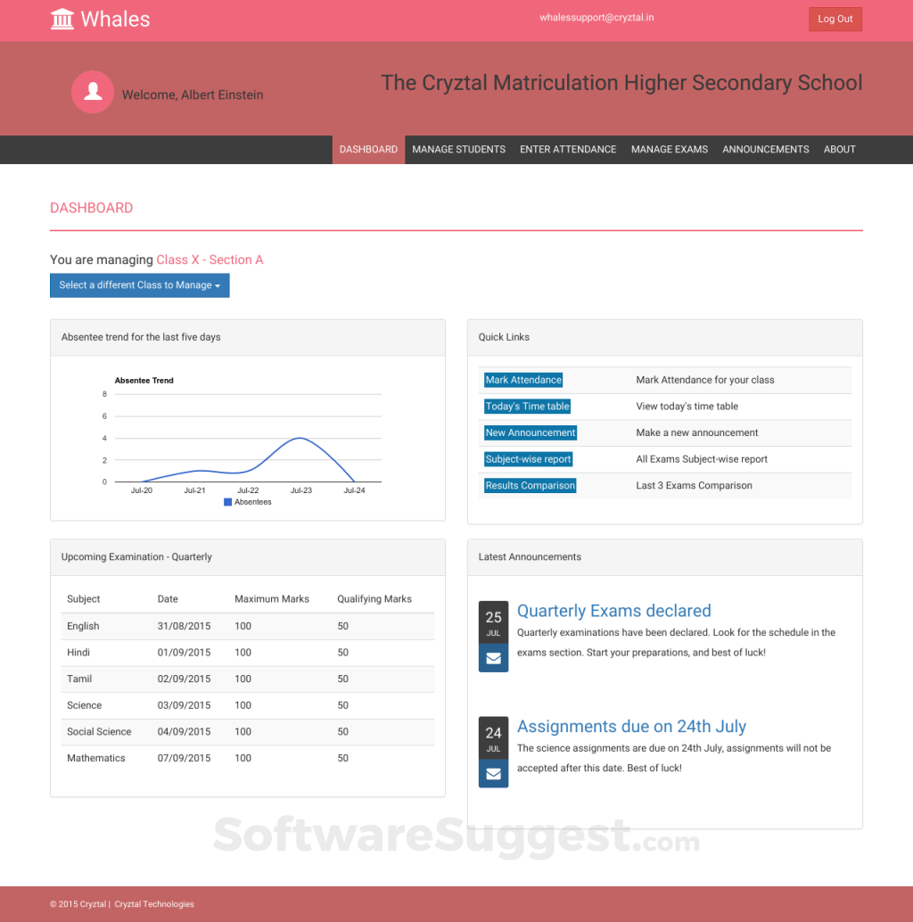 Whales For Schools is commonly used for various purposes, such as College Management and more.