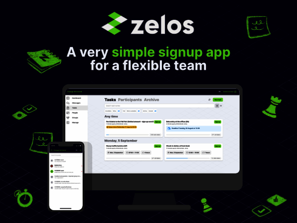 Zelos serves organizations that need to coordinate flexible workforces outside traditional office environments, including event management companies, volunteer organizations, and field service teams. Core functionality centers around self-service shift signup, where workers can view and register for available time slots through their mobile devices, while administrators maintain scheduling oversight and control through a comprehensive management interface.